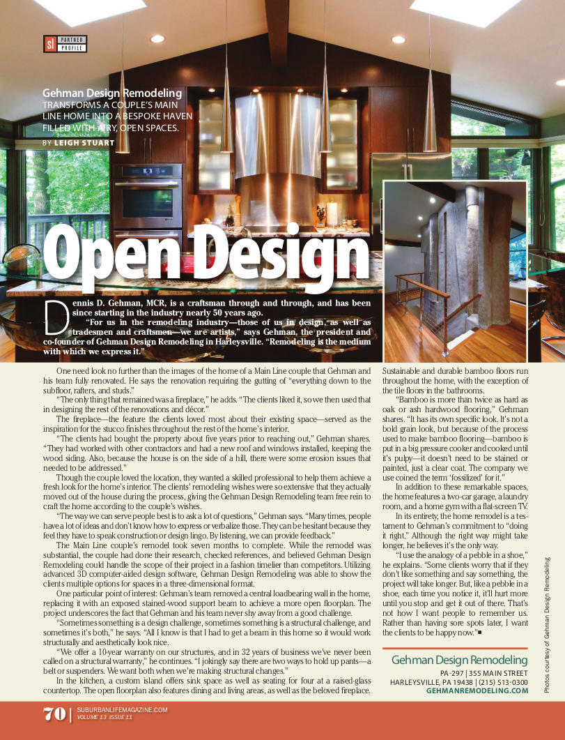 “For us in the remodeling industry—those of us in design, as well as tradesmen and craftsmen—we are artists,” says Gehman, the president and co-founder of Gehman Design Remodeling in Harleysville. “Remodeling is the medium with which we express it.”